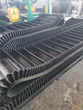 基带的构造:基带是由上覆盖胶、下覆盖胶、带芯和横向刚性层四部分组成。上覆盖胶厚度一般为3-6mm;下覆盖胶厚度一般为1.5-4.5mm,带芯材料承受拉力,其材料可以是棉帆布(CC)、尼龙帆布(NN)、聚酯帆布(EP)或刚绳芯(ST)。为了增加基带的横行刚性,在芯体上、上假如特殊加强层,称横向刚性层。基带的宽度规格,与普通胶带相同波形挡边输送带被广泛引用与港口、冶金、矿山、电力、煤炭、铸造、建材、粮食