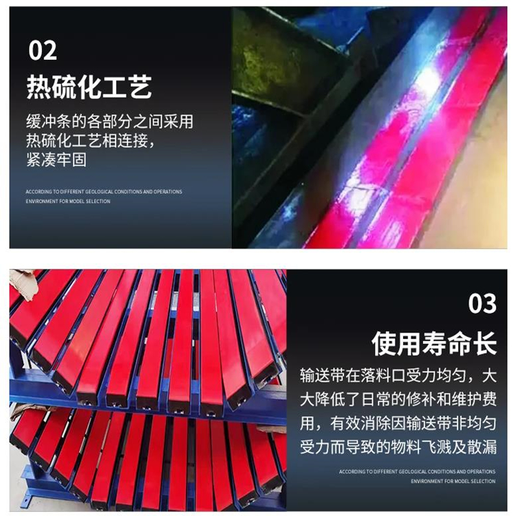 1. 缓冲条输送带的面接触有效防止了对输送带的损伤。