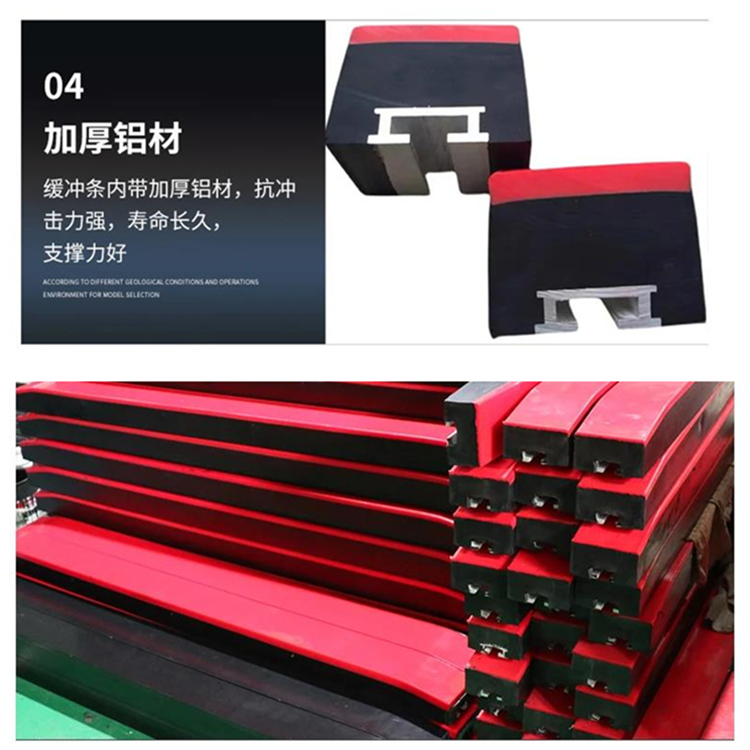 7. 缓冲条的各部分之间采用热硫化工艺相连接,紧凑牢固。